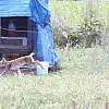 Tavuk kümesine gelen vaşak, balıkçı ağıyla yakalandı