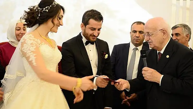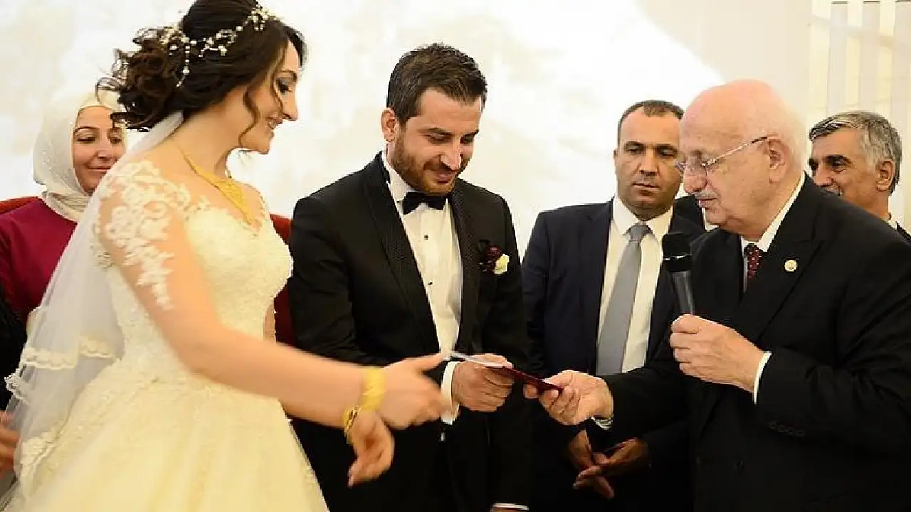 Reşat ve Münevver Gürsoy çiftine evlilik cüzdanlarını veren Kahraman, Cumhurbaşkanı Recep Tayyip Erdoğan'ın 3 çocuk nasihatını da hatırlattı.