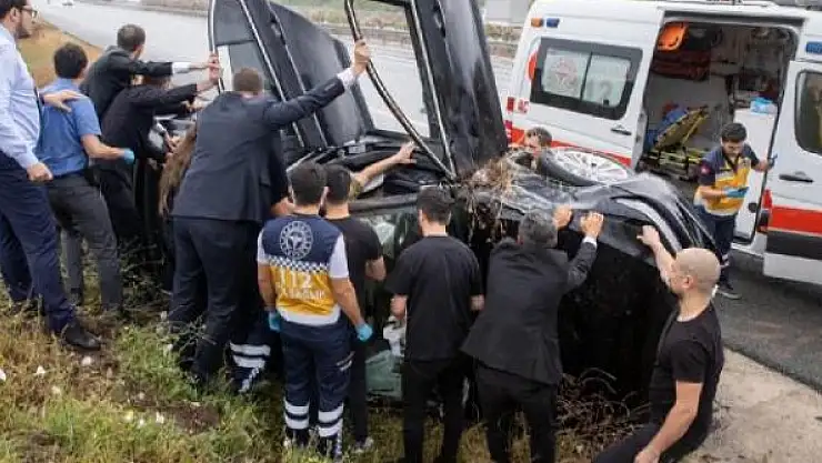 Kazada araçta bulunan 2 koruma polisi ile 2 özel kalem müdür yardımcısı yaralandı.