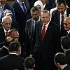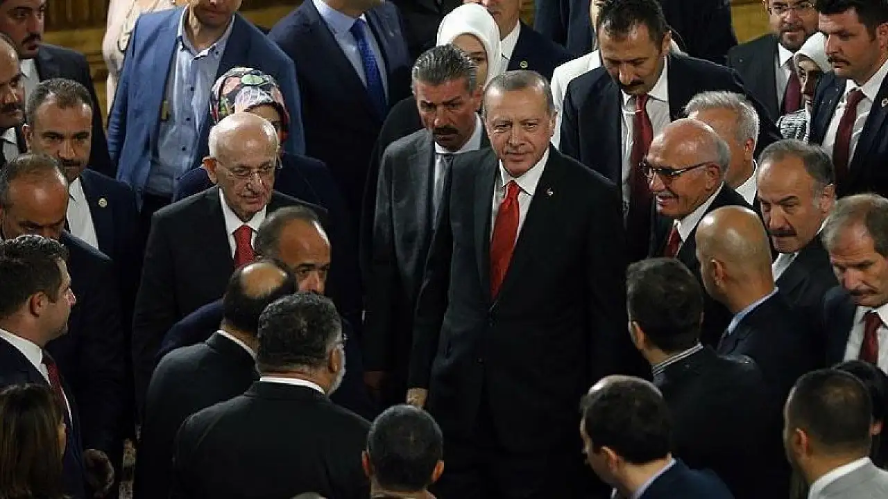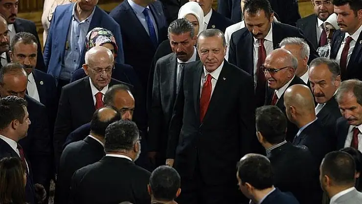 TBMM Başkanı Kahraman ile salonu dolaşan Cumhurbaşkanı Erdoğan, Başbakan Yıldırım, MHP Genel Başkanı Bahçeli, BBP Genel Başkanı Mustafa Destici ve DSP Genel Başkanı Önder Aksakal ile selamlaştı.