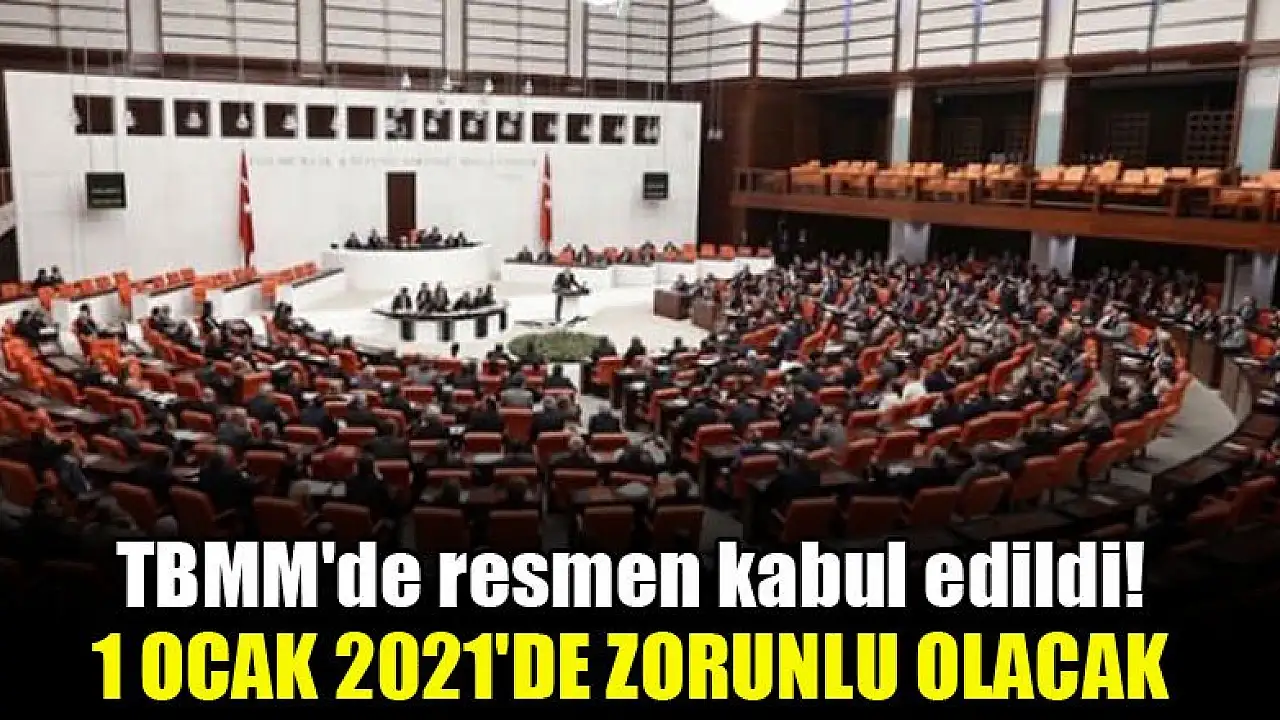 TBMM'de resmen kabul edildi! 1 Ocak 2021'de zorunlu olacak