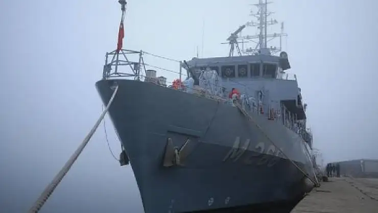 Halatlar yardımı ile limana bağlanan geminin bölgede mayın arama faaliyetlerine yarın devam edeceği açıklandı.