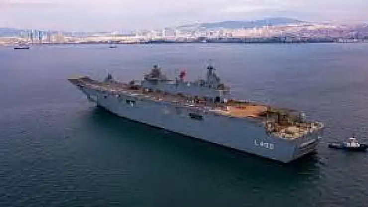 Dünyanın ilk silahlı insansız hava aracı (SİHA) gemisi TCG Anadolu, Çanakkale Boğazı'ndan geçti.