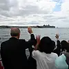 TCG Anadolu, vatandaşları selamlayarak İstanbul Boğazı geçişi seyrini sürdürüyor.