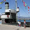 Dünyanın ilk ve tek yüzer müze gemisi hakkında görevlilerden bilgi alan ziyaretçiler, gemide fotoğraf da çektirdi.