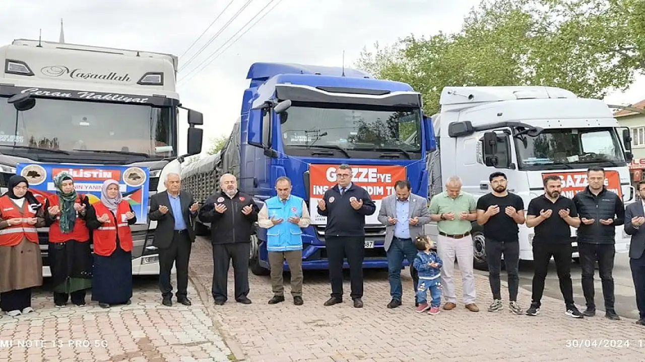 TDV Konya Şubesi ile Türk Kızılayı Karatay Şubesi'nin iş birliğiyle Konyalı hayırseverlerin yardımlarıyla hazırlanan 3 tır un, Gazzelilere ulaştırılmak üzere yola çıktı.