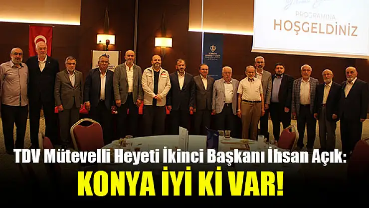 İlahiyat Akademi Yıl Sonu Buluşma programında konuşan TDV Mütevelli Heyeti İkinci Başkanı İhsan Açık, 'Konya'nın yeri TDV açısından çok önemlidir. Konya iyi ki var diyoruz' dedi.