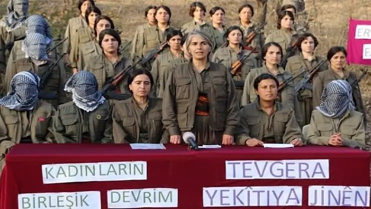 Başını PKK'nın çektiği kadınlardan oluşan silahlı maskeli 6 terörist grup Kandil'de birleşip Dünya Kadınlar Günü bahanesiyle 'referandumda hayır' propagandası yaptı.
