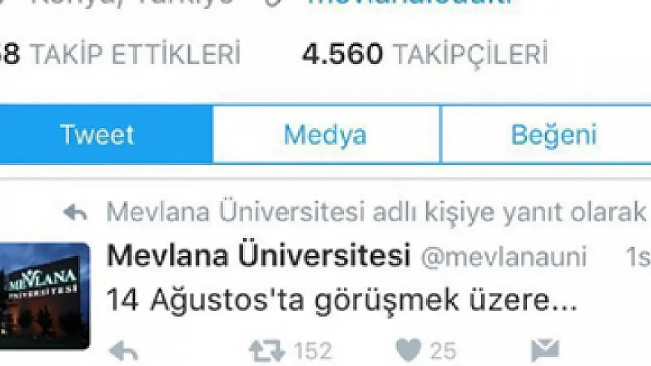 Fetullahçı Terör Örgütünün 15 Temmuz’daki darbe girişimi sonrasında, Konya’daki Mevlana Üniversitesi kapatıldı. Ancak üniversitenin resmi twitter hesabından önceki gün tehdit dolu mesajların yer aldığı paylaşımlar yapıldı.
