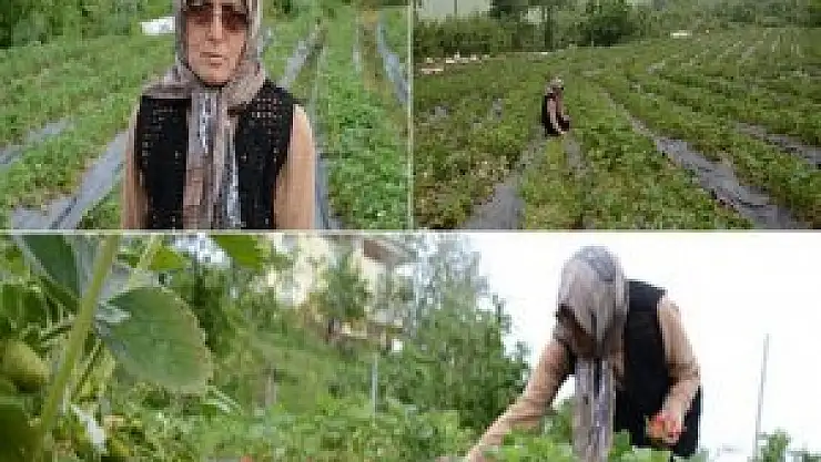 Ordu'da iki dönüme yakın bahçesine 12 bin çilek fidesi diken 60 yaşındaki Ülkü Aydın, tek başına yetiştirdiği çilekleri satarak geçimini sağlıyor.