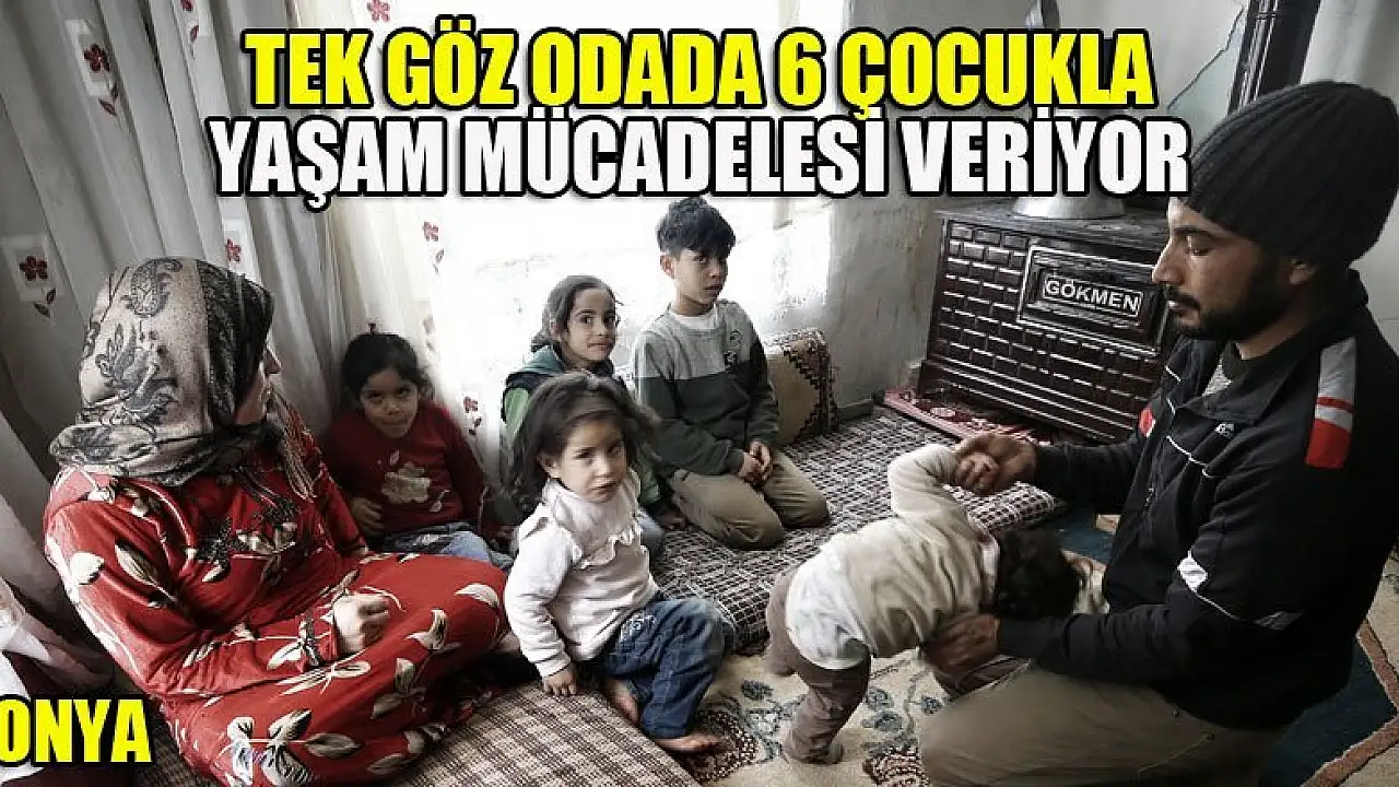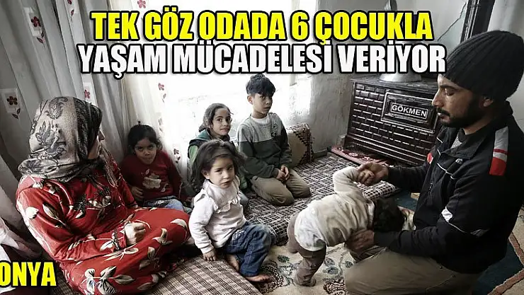 Suriye‘de Beşşar Esed rejiminin, başkent Şam’da abluka altında tuttuğu Doğu Guta bölgesinden kaçarak Türkiye'ye sığınan, Konya'da bakımsız bir evin tek göz odasında barınan 6 çocuklu aile, kışın soğuk günlerinde güç şartlarda yaşam mücadelesi veriyor.