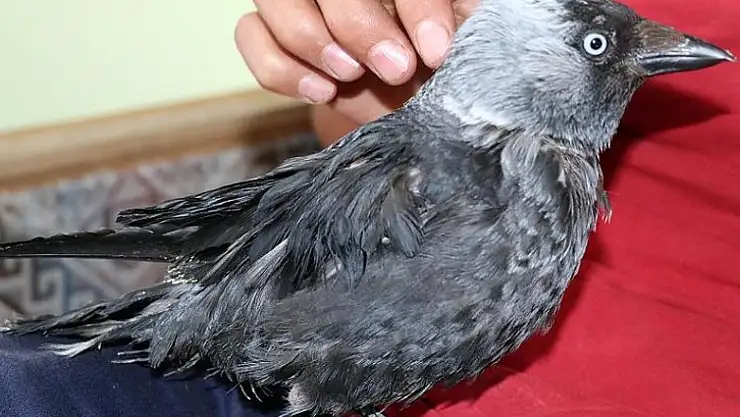 Tek ayağı ve kanadı olmayan kargaya ''Garip'' ismini veren Kurt, iyileştirdiği ve bakımını üstlendiği kuşu evin bir üyesi gibi görüyor.