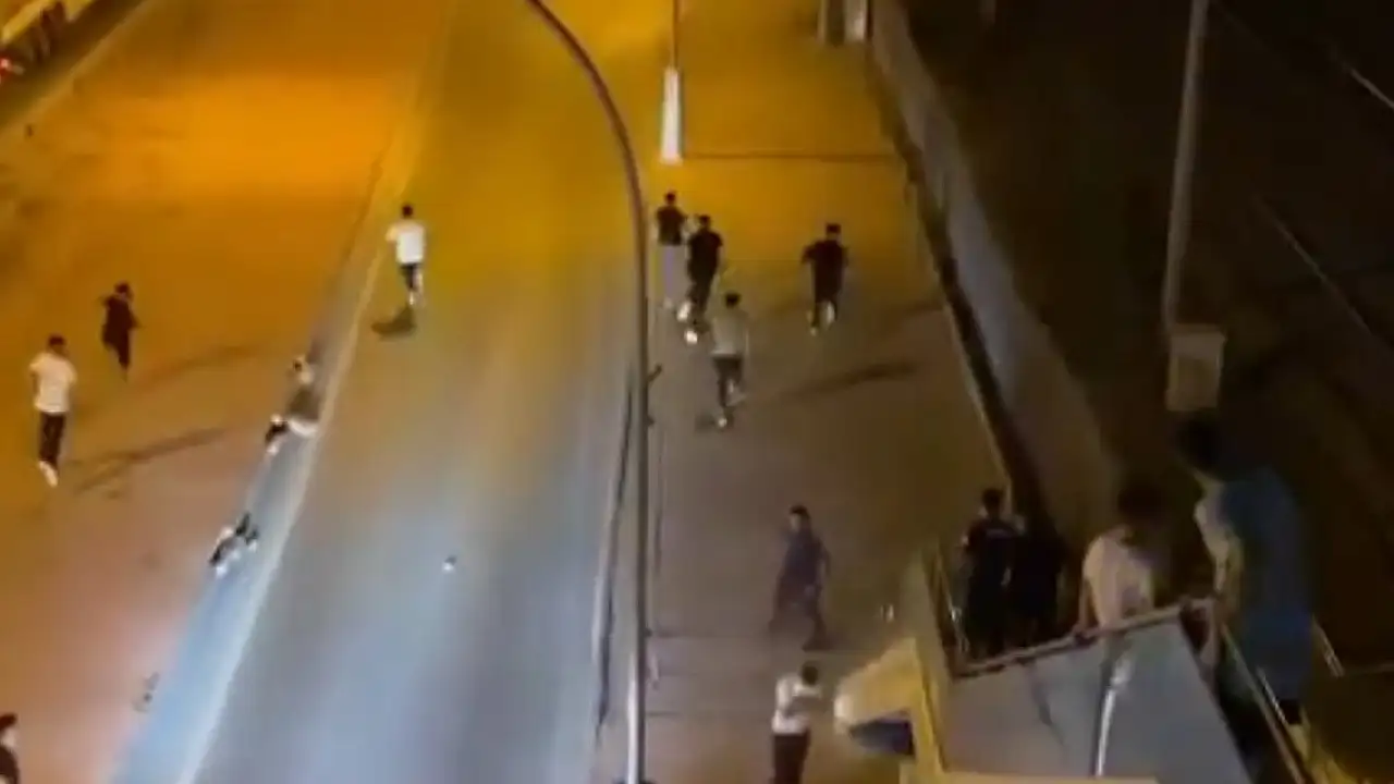 Olay, gece Mimar Sinan Köprüsü'nün altında meydana geldi. Kalabalık grup, bilinmeyen nedenle tekme tokat kavga etmeye başladı. Bu sırada bölgede devriye gezen polis ekibi, kavgayı fark etti. Köprü merdiveninden inen polisleri gören gençler, koşarak uzaklaştı. Polisin gruptan birkaçına müdahale ettiği kavga, cep telefonu kamerasıyla görüntülendi. Görüntülerde, kavga anı ve polisler geldikten sonra gençlerin kaçışı yer aldı.
