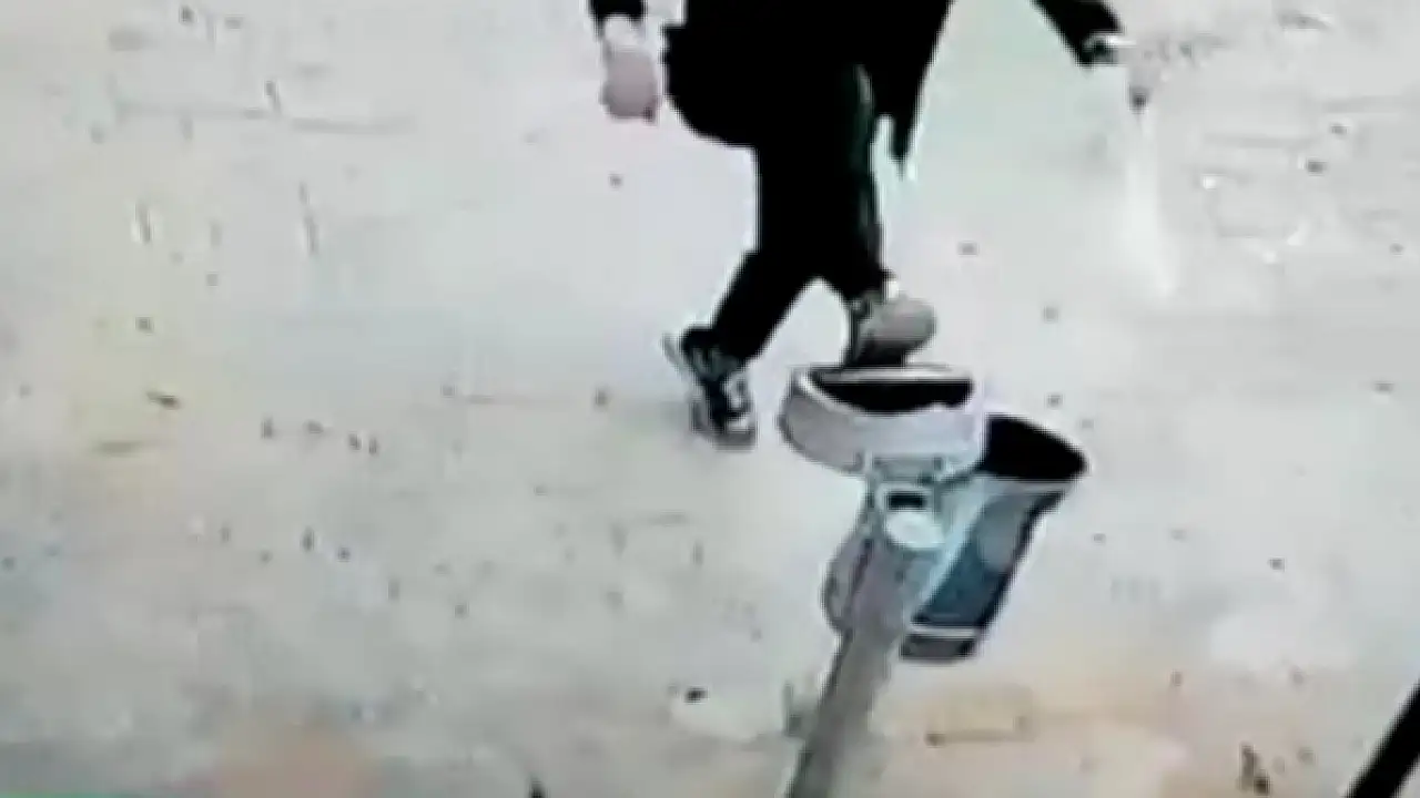 Nusaybin ilçesi Abdulkadir Paşa Mahallesi Dağ Sokak TOKİ konutlarında bir binanın önündeki direğe monteli çöp kovasının yanına gelen kişi, kapağını çıkarmaya çalıştı. Güvenlik kamerasına yansıyan görüntüde kapağı çıkaramayan şüpheli, bu kez tekmelemeye başladı. Ancak şüpheli, ilk vuruşunda yere düştü. Şüpheli daha sonra, kovayı sökmeye çalıştı.