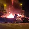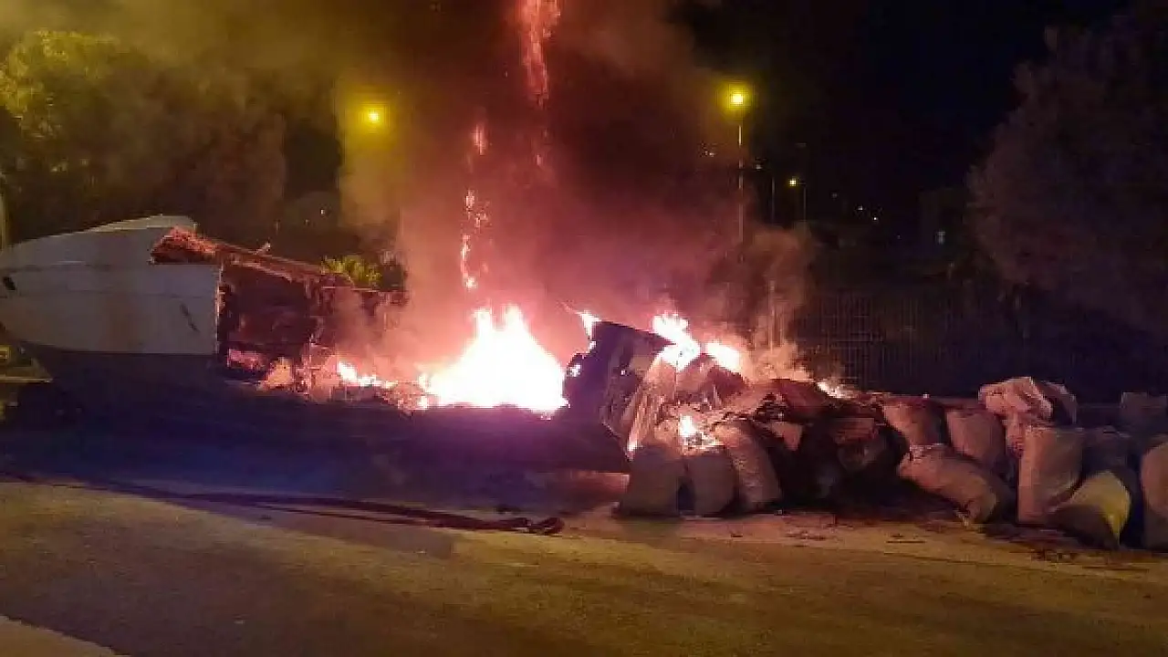 Muğla'nın Bodrum ilçesinde karada bulunan bir teknede çıkan yangında alev alev yanan tekne ve yanındaki çam ağacı, itfaiye ekiplerinin müdahalesiyle söndürüldü.