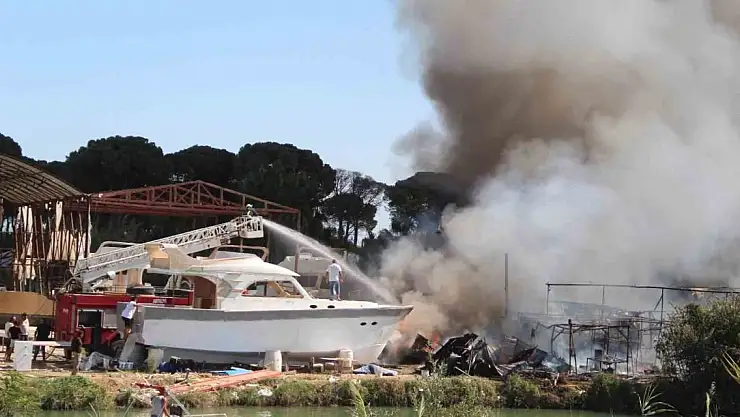 Antalya'nın Aksu ilçesi Aksu Çayı kenarında çıkan yangında tersanedeki 3 tekne zarar gördü, ormanlık alana da sıçrayan yangın söndürüldü.