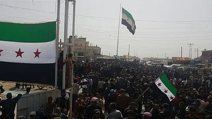 Zeytin Dalı Harekatı kapsamında Afrin'in PYD/PKK terör örgütünden temizlenmesini memnuniyetle karşılayan Tel Rıfat halkı, kendi şehirlerinin de terör örgütlerinden kurtarılması için şehir meydanında toplandı.