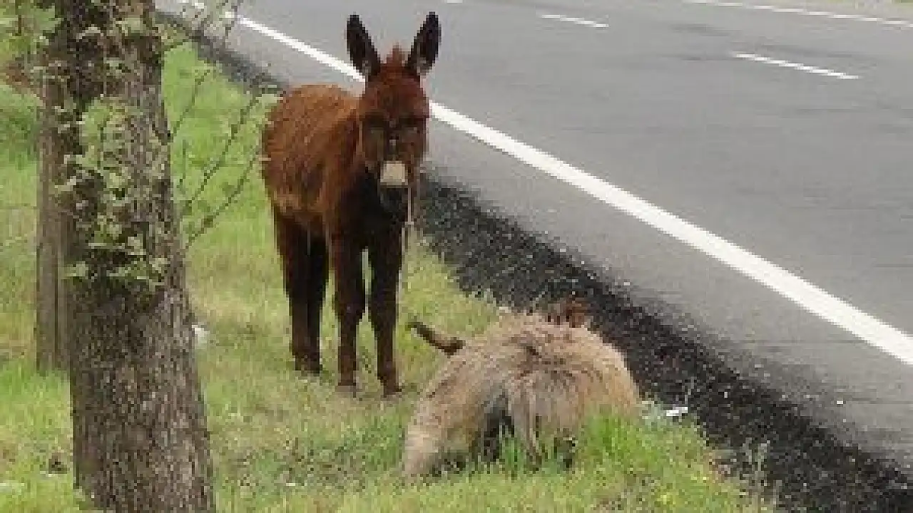 Diyarbakır-Mardin karayolunun 20. kilometresinde araç altında kalarak telef olan eşeğin yavrusu, annesinin başından 5 gündür ayrılmıyor. Sıpanın, anne sevgisi olaya şahit olan vatandaşları duygulandırdı.