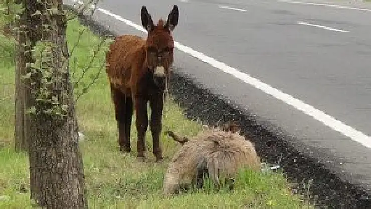Çevrede oturanlardan Recep Ercan, 5 gün önce caddeden geçen eşeklerden birine araç çarptığını, o günden bu yana sıpanın, annesi olduğunu öğrendikleri eşeğin yanından ayrılmadığını dile getirdi.