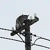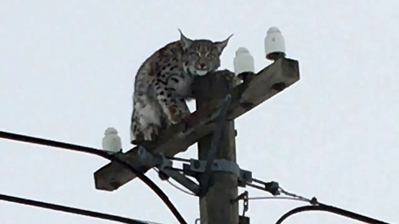 Telefon direğine tırmanan vaşağı 'gel pisi pisi' diye çağırdı