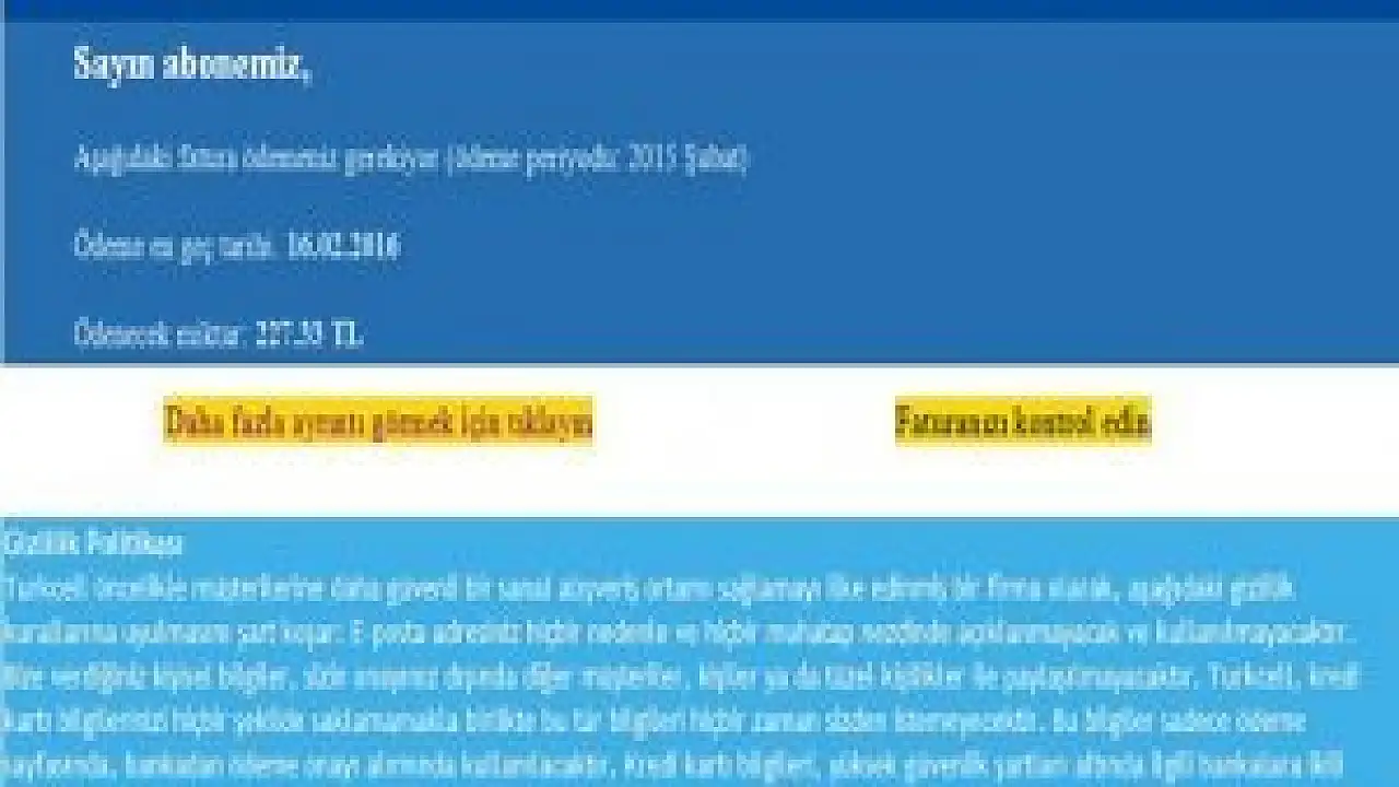 Telefon faturası görünümündeki virüse dikkat