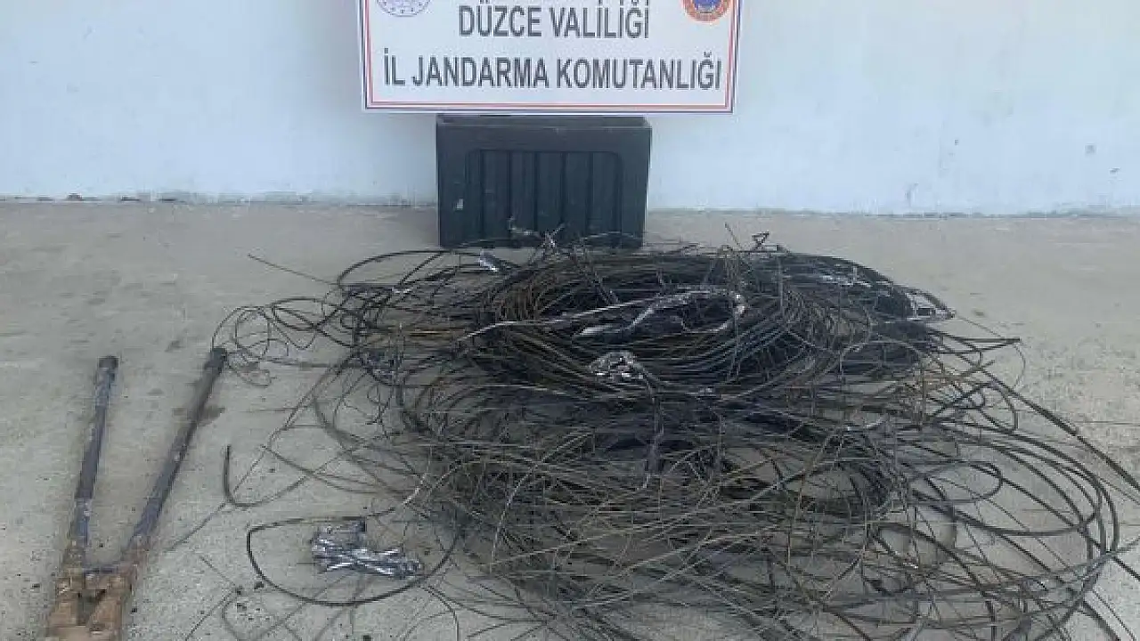 Düzce'de köyün telefon kablolarını keserek çalan şahıs jandarma ekiplerinin yaptığı detaylı çalışma sonucu yakalandı.