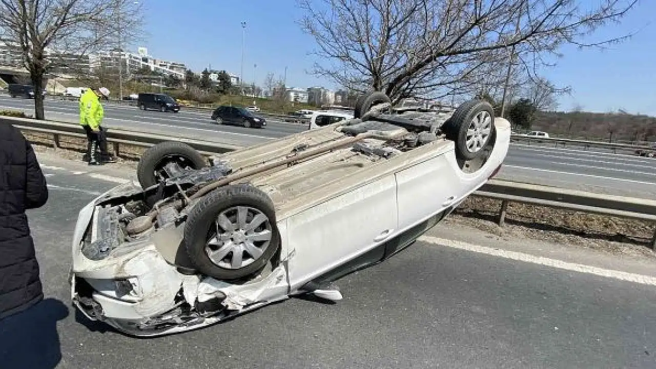 TEM otoyolunda cipin tekerine vuran otomobil takla attı: 1 yaralı