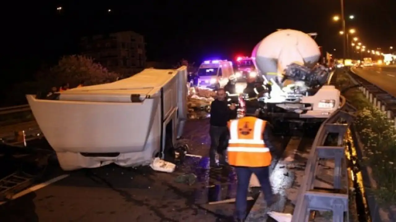 Kaza TEM otoyolu İzmit kesimi Hatipköy mevkinde meydana geldi. Edinilen bilgiye göre Erdal Ölmez (41) idaresindeki 01 CHC 77 çekici plakalı şerbet yüklü TIR, önünde meydana gelen kaza için sinyallerini yakarak yavaşladı. Bir süre sonra ise Selim Sağıroğlu idaresindeki 34 PY 3401 çekici plakalı çimento yüklü TIR da son anda fark ettiği TIR'a duramayarak arkadan çarptı.