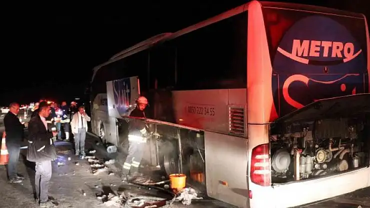 Yangın çıktığı sırada uyuduğunu söyleyen bir yolcu, "Aracın lastiği patladı. Patlak lastikle devam ettikten sonra dumanlar çıkmaya başladı. Muavin yangın olduğunu söyledi. Başka bir otobüs geleceğini söylediler. Burada bekliyoruz" dedi.