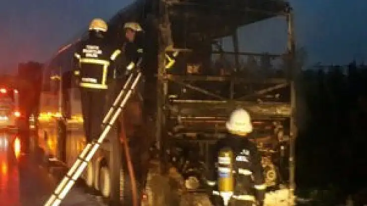 TEM Otoyolu'nun Kocaeli geçişinde şehirlerarası yolcu taşıyan bir otobüs hareket halindeyken yanmaya başladı. Araçtaki yolcular şans eseri yara almadan kurtuldu.