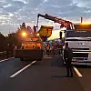 TEM'de TIR'ın açılan damperi tabelaya çarptı Ankara yönü ulaşıma kapandı