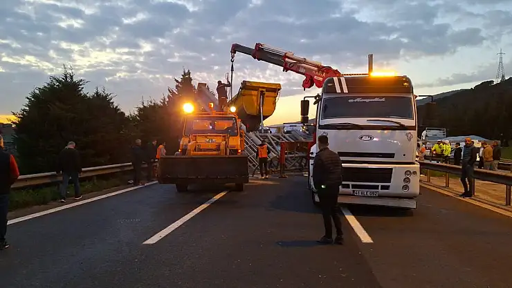 Kaza, saat 17.00 sıralarında TEM yolunun Körfez kavşağı mevkisinde meydana geldi. Ankara istikametine ilerleyen sürücüsünün ismi ve plakası öğrenilemeyen TIR'ın damperi, seyir halindeyken açıldı.