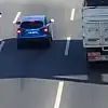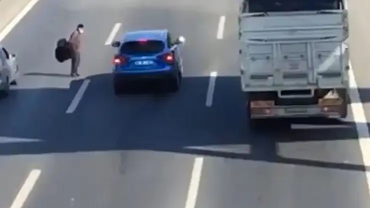 Sultanbeyli'de TEM Otoyolu'nun ortasında bekleyerek hayatını tehlikeye atan yaya kazaya neden oldu. O anlar cep telefonu kamerasına yansıdı.
