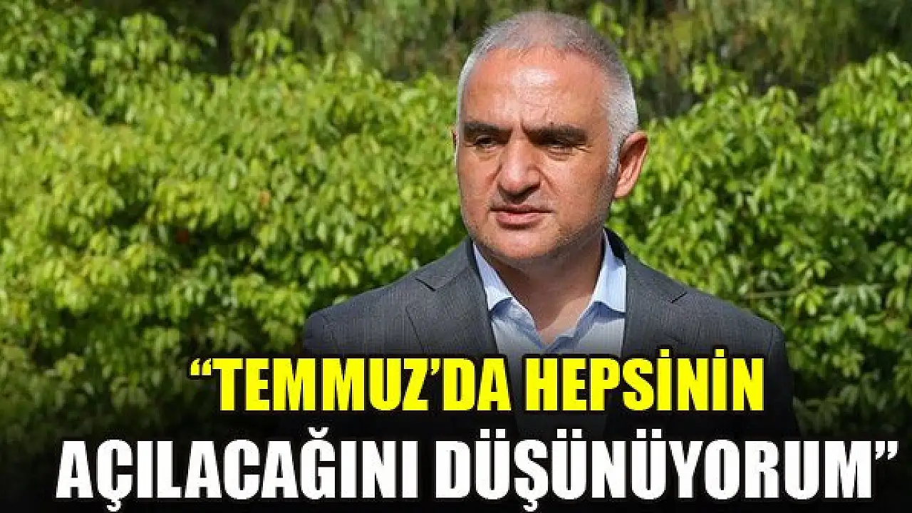 Turizmde yeni normale geçiş süreci hakkında konuşan Kültür ve Turizm Bakanı Ersoy, 'Temmuz itibarıyla açılmayı hedefleyen tesislerin hepsinin açılacağını düşünüyorum.' ifadelerini kullandı.