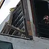 Teras katında tadilat yaparken, ahşap çatı üzerine devrildi