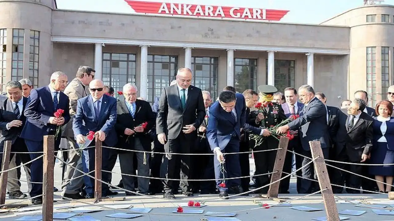 Ankara Valisi Ercan Topaca ve beraberindeki çok sayıda kamu yöneticisi, Ankara Garı kavşağına gelerek, saldırının yapıldığı yere hayatını kaybedenlerin anısına karanfil bıraktı.