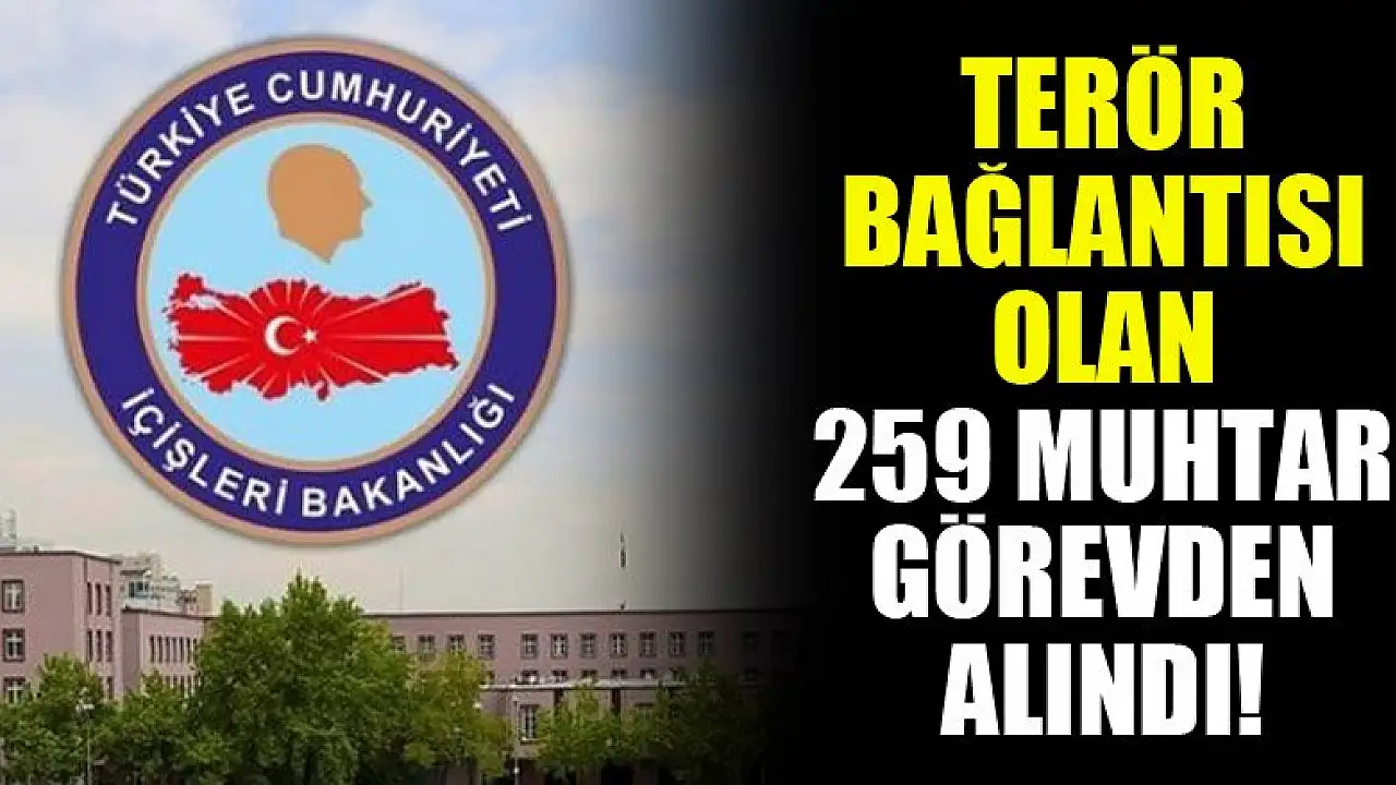 İçişleri Bakanlığı tarafından yapılan yazılı açıklamada, 259 muhtarın görevden uzaklaştırıldığı bildirildi.