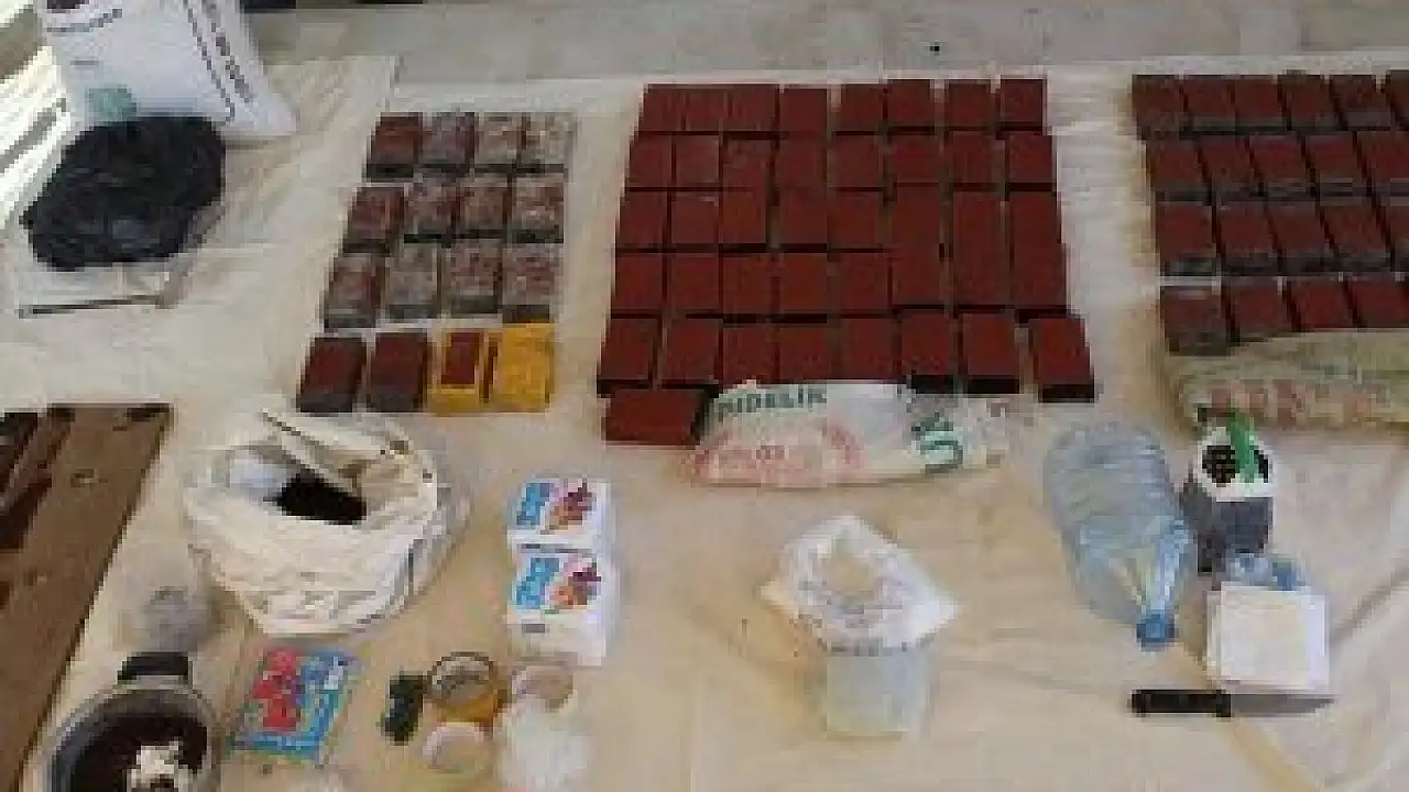 Aramada 16 metal profile hazırlanmış el yapımı patlayıcı, bomba yapımında kullanılmak üzere hazırlanmış 67 boş metal profil, 2 çuval içinde bomba yapımında kullanıldığı değerlendirilen kimyasal madde ve bir kutu torpil ele geçirildi.