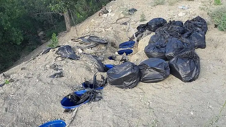 "Teröristlere ait 3 mağara ve 8 sığınak içinde ve çevresinde yapılan aramada, 3 uzun namlulu silah, 2 tabanca, 8 el bombası, 6 muhtelif şarjör, 32 muhtelif fişek, 11 tabanca susturucusu, 24 mutfak tüpü, 100 kilogram amonyum nitrat, 2 fünye, 2 jeneratör, 6 el telsizi, 32 büyük pil, 20 uyku tulumu, 2 hücum yeleği, 10 terörist kıyafeti, 750 kilogram gıda malzemesi, çok sayıda konserve, tıbbi malzemeler, çok sayıda sargı bezi, şırınga, antibiyotik, ameliyat seti, kas gevşetici ele geçirildi."