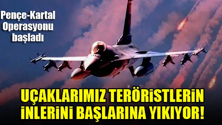 Milli Savunma Bakanlığı (MSB), "Pençe-Kartal Operasyonu"nun başladığını, Türk savaş uçaklarının teröristlerin inlerini başlarına yıktığını bildirdi.