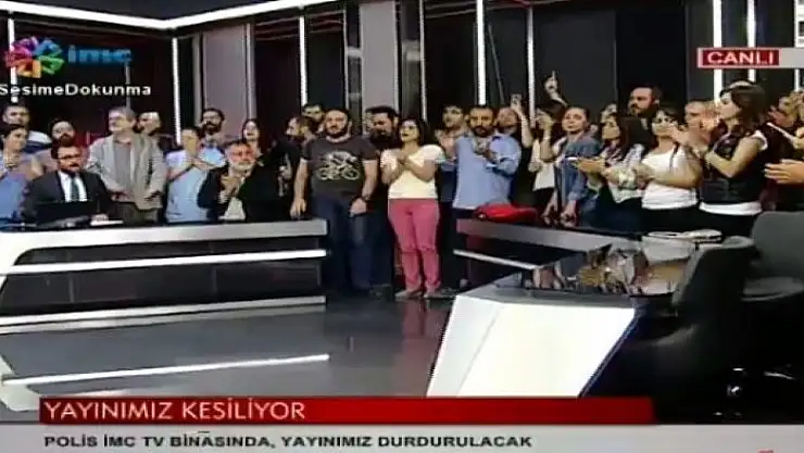 RTÜK ekipleri, kapatılan televizyonlar arasında bulunan İMC TV'ye gitti. Kanalı mühürleyen ekiplere karşı çıkan televizyon çalışanları, taşkınlık çıkarmak istedi.