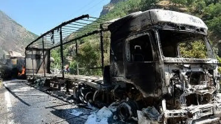 Şemdinli ilçesinde bölücü terör örgütü PKK mensupları, 5 iş makinesini ateşe verdi.