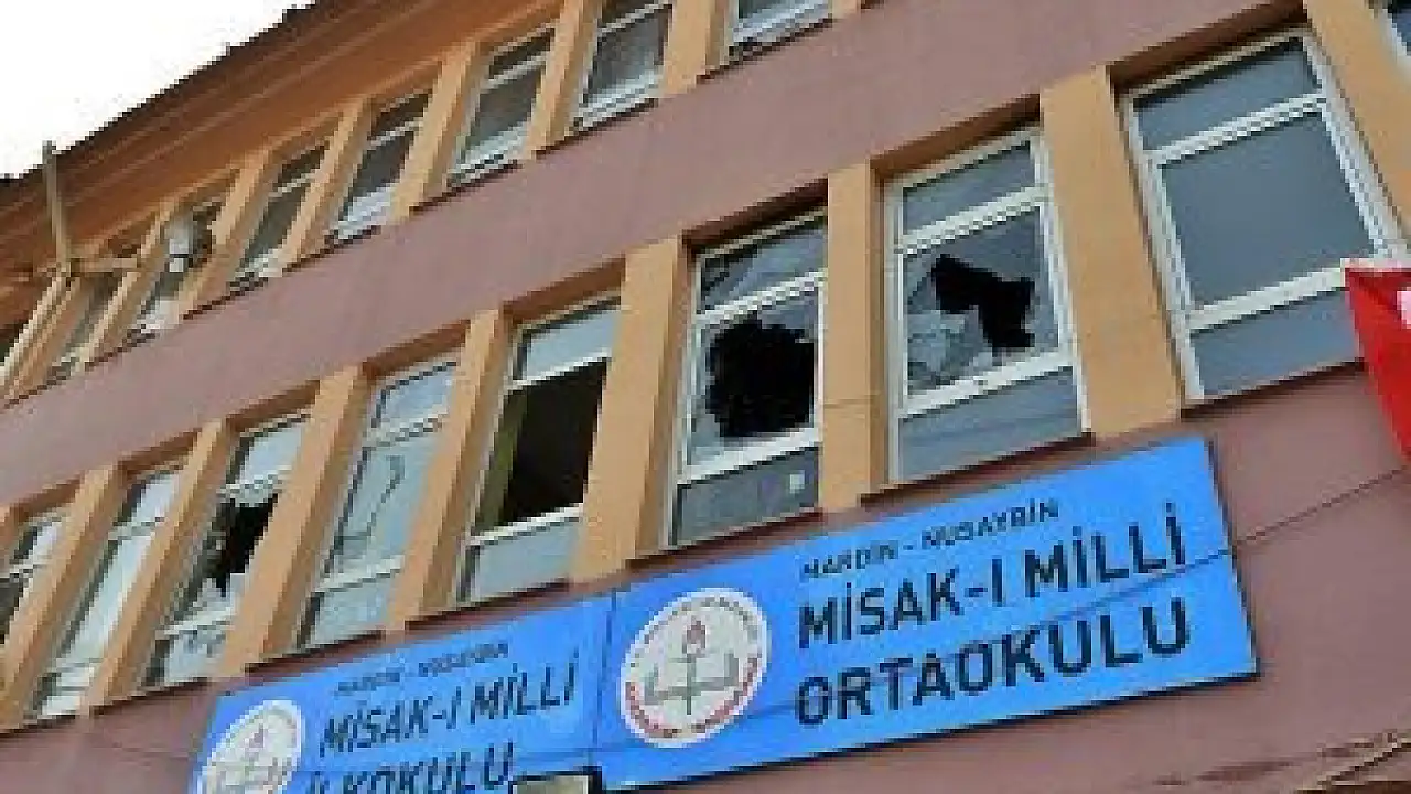 Mardin Nusaybin'de teröristlerce üs gibi kullanıldıktan sonra ateşe verilen Misak-ı Mili Ortaokulu büyük oranda tahrip oldu.