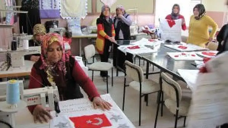 Kırıkkale'nin Karakeçili ilçesi Halk Eğitimi Müdürlüğünde dikiş nakış kursu gören kadınlar, el emeği göz nuru işledikleri Türk bayraklarını, doğuda görev yapan güvenlik güçlerine gönderdi.