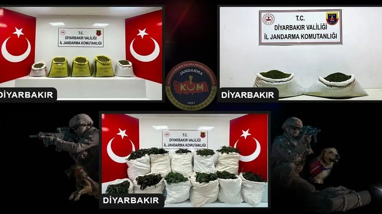 Jandarma Genel Komutanlığı'ndan yapılan açıklamada, "Diyarbakır İl Jandarma Komutanlığımızca Lice ve Hani'de gerçekleştirilen narko-terör operasyonlarında; 2 milyon 147 bin kök kenevir bitkisi, 65 bin kök skunk bitkisi, 190 kilogram kubar esrar, 91 kilogram toz esrar ele geçirilmiştir" bilgisi verildi.