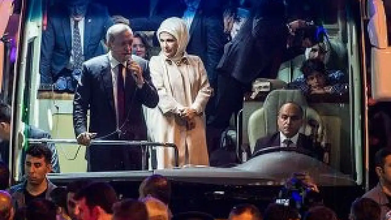 Erdoğan, ilçeden ayrılmadan önce Güneysu Merkez Cami önünde kendisini bekleyen vatandaşlara makam aracından inerek otobüs üzerinden hitap etti.