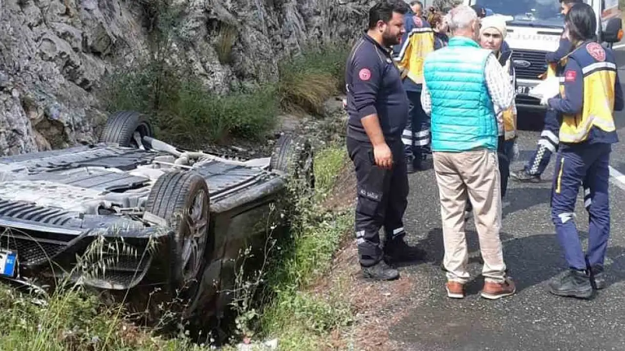 Ters dönen aracın sürücüsü yara almadan kurtuldu