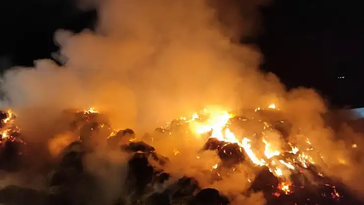 Tesiste çıkan yangında tonlarca saman ve yem kül oldu