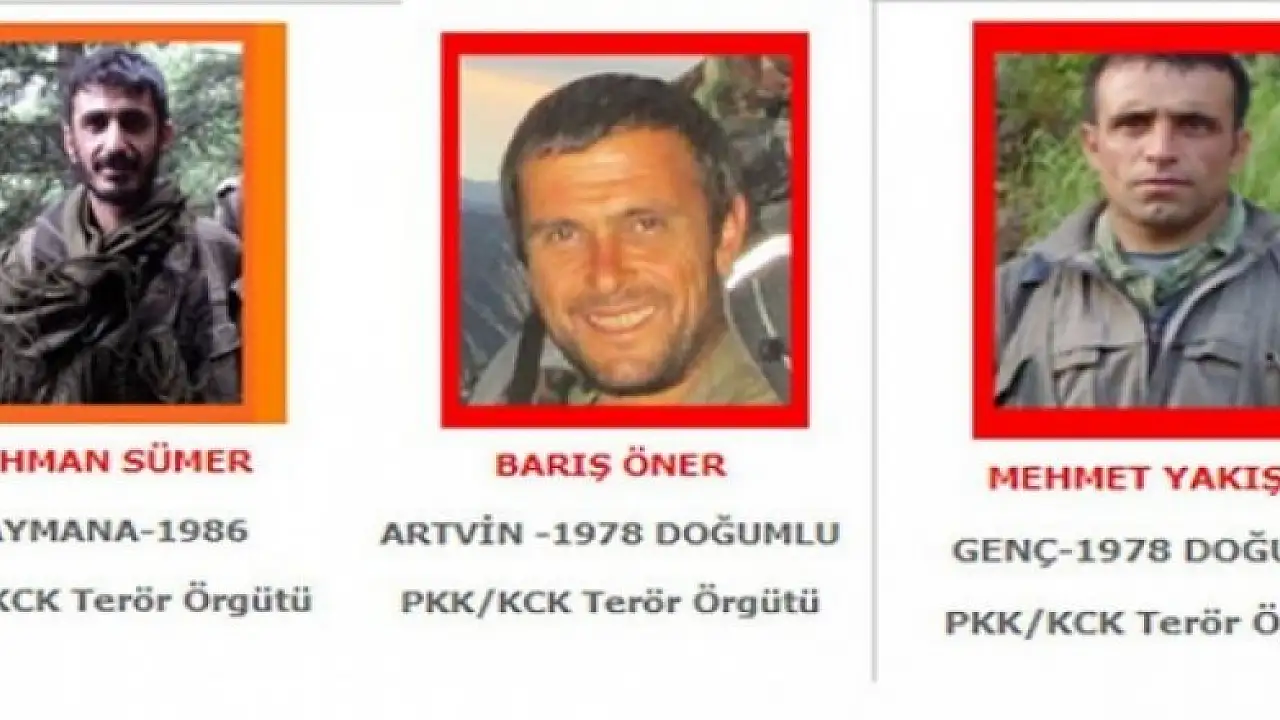 İçişleri Bakanlığı’nın ‘Aranan Teröristler’ web sitesi üzerinden yayınladığı ve ihbar edenlere 4 milyon lira paraya kadar para ödüllü verildiği ‘kırmızı’ listede yer alan ‘Cudi Zaza’ kod adlı Mehmet Yakışır ve ‘Türk Tarık’ kod adlı Artvin’in Şavşat ilçesi nüfusuna kayıtlı Barış Öner yer alıyor.