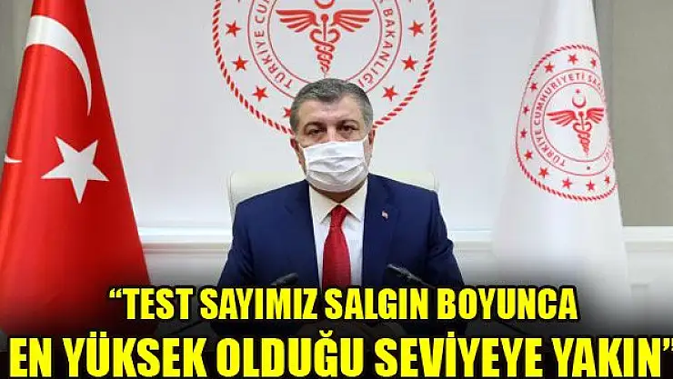 Sağlık Bakanı Koca, "Test sayımız salgın boyunca en yüksek olduğu seviyeye yakın. 60 yaş ve üzeri aktif hastaların toplam hasta içindeki oranı, ülke geneline bakıldığında, %20-25 aralığında seyrediyor" dedi.